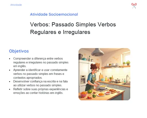 Nesta atividade dinâmica, você será o diretor e o ator da sua própria peça teatral! Vamos trazer o vocabulário da sala de aula em inglês para a vida real, criando e atuando em cenas que representam situações típicas do dia a dia escolar. O objetivo é praticar o uso do vocabulário de uma maneira divertida e criativa, além de melhorar sua pronúncia e fluência. Você deverá escolher situações como uma aula de matemática, um intervalo entre as aulas ou uma conversa com o professor. Cada cena deve incluir diálogos que usem o vocabulário aprendido, como nomes de itens da sala de aula e comandos comuns. Prepare-se para colocar seu inglês em prática, enquanto se diverte criando e atuando nas suas cenas!
