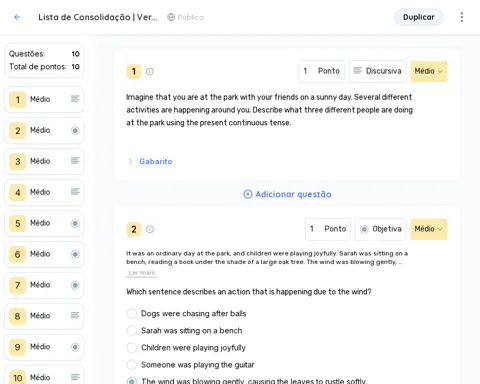 Para reforçar o aprendizado, forneça a 'Lista de Consolidação | Verbos: Introdução ao Presente Contínuo' como dever de casa. Esta lista deve incluir exercícios práticos que ajudem os alunos a aplicar o que aprenderam sobre o presente contínuo. Além disso, recomende o 'Livro: Verbos: Introdução ao Presente Contínuo' para leitura complementar, onde os alunos podem encontrar mais exemplos e explicações sobre o uso do presente contínuo. Dica: Encoraje os alunos a compartilhar suas respostas em grupos pequenos para promover a discussão e a colaboração.