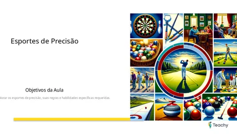 Inicie a aula com a leitura do livro "Precision Sports: Um Caminho para a Precisão e Além". Este material oferece uma visão geral sobre a importância da precisão em esportes e como essas habilidades se aplicam em diversas áreas da vida. Utilize a lista de exercícios para preparar os alunos para as atividades práticas. Os exercícios devem focar em arremessos e coordenação motora, preparando-os para o que virá na aula. Por fim, exiba um vídeo que ilustre esportes de precisão, mostrando exemplos práticos e inspiradores. Isso ajudará a engajar os alunos e a conectar a teoria com a prática!
