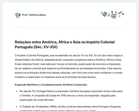Cadeias Produtivas e Rotas Comerciais Coloniais