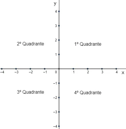 O plano é dividido em quatro quadrantes, numerados no sentido anti-horário a partir do quadrante superior direito.