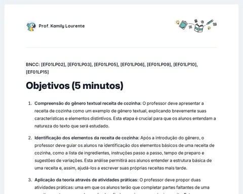 A etapa de objetivos é fundamental para estabelecer claramente o que se espera que os alunos aprendam ao final da aula. Ao delinearmos os objetivos principais, estamos direcionando o foco dos estudantes e garantindo que todas as atividades propostas estejam alinhadas com as competências que desejamos que desenvolvam. Essa clareza permite uma abordagem mais eficaz e direcionada durante a aula, assegurando que os alunos possam aplicar o conhecimento prévio de maneira efetiva e crítica.