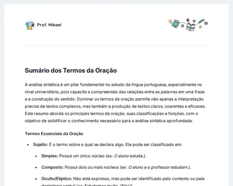 - Escolha um texto de sua preferência e reescreva-o utilizando os três tipos de colocação pronominal. Observe como a alteração da posição dos pronomes afeta o ritmo e a clareza do texto. 2. Crie um diálogo entre personagens que devem usar diferentes formas de colocação pronominal, como um advogado em um tribunal (ênclise) e um grupo de amigos conversando informalmente (próclise). 3. Escreva um pequeno ensaio sobre a importância da colocação pronominal na língua portuguesa, discutindo como o uso adequado pode melhorar a qualidade de textos acadêmicos e profissionais.